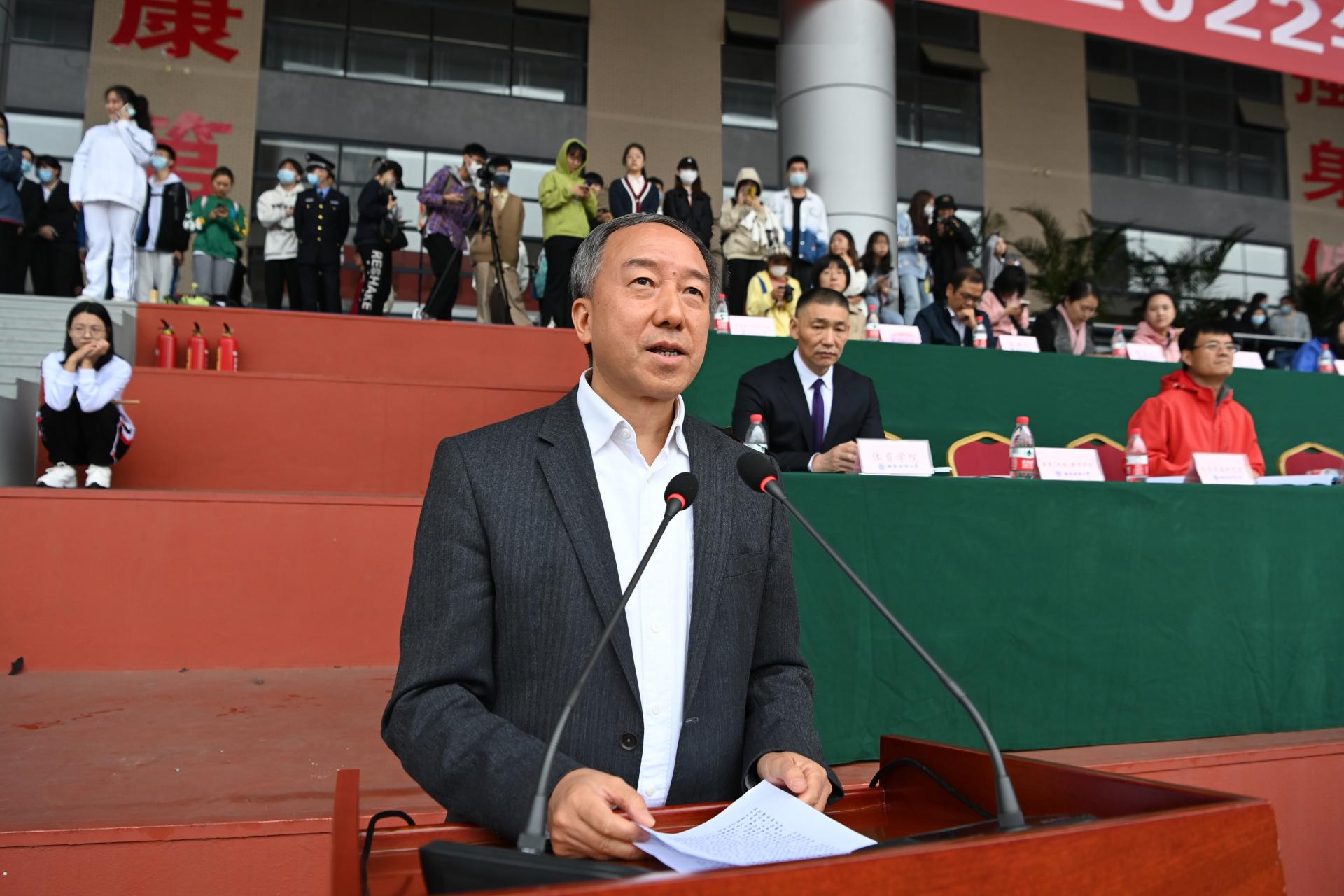 在全国上下深入学习宣传贯彻党的二十大精神之际,完美体育在线(中国)唯一官方网站2022年秋季运动会积极响应习近平总书记在党的二十大报告中发出的“加快建设体育强国”总号召,以“礼赞新时代、奋进新征程,弘扬体育精神、圆梦强国复兴”为主题,于10月27-28日在柳林校区举行。学校党委书记赵德武,党委副书记、校长卓志,党委副书记马骁,党委副书记、副校长李永强,党委常委、副校长尹庆双、史代敏、张邦富、李志生,学院(研究院)和各职能部门负责人参加了开幕式。