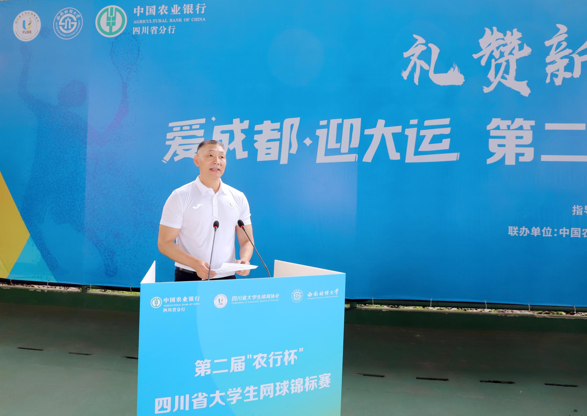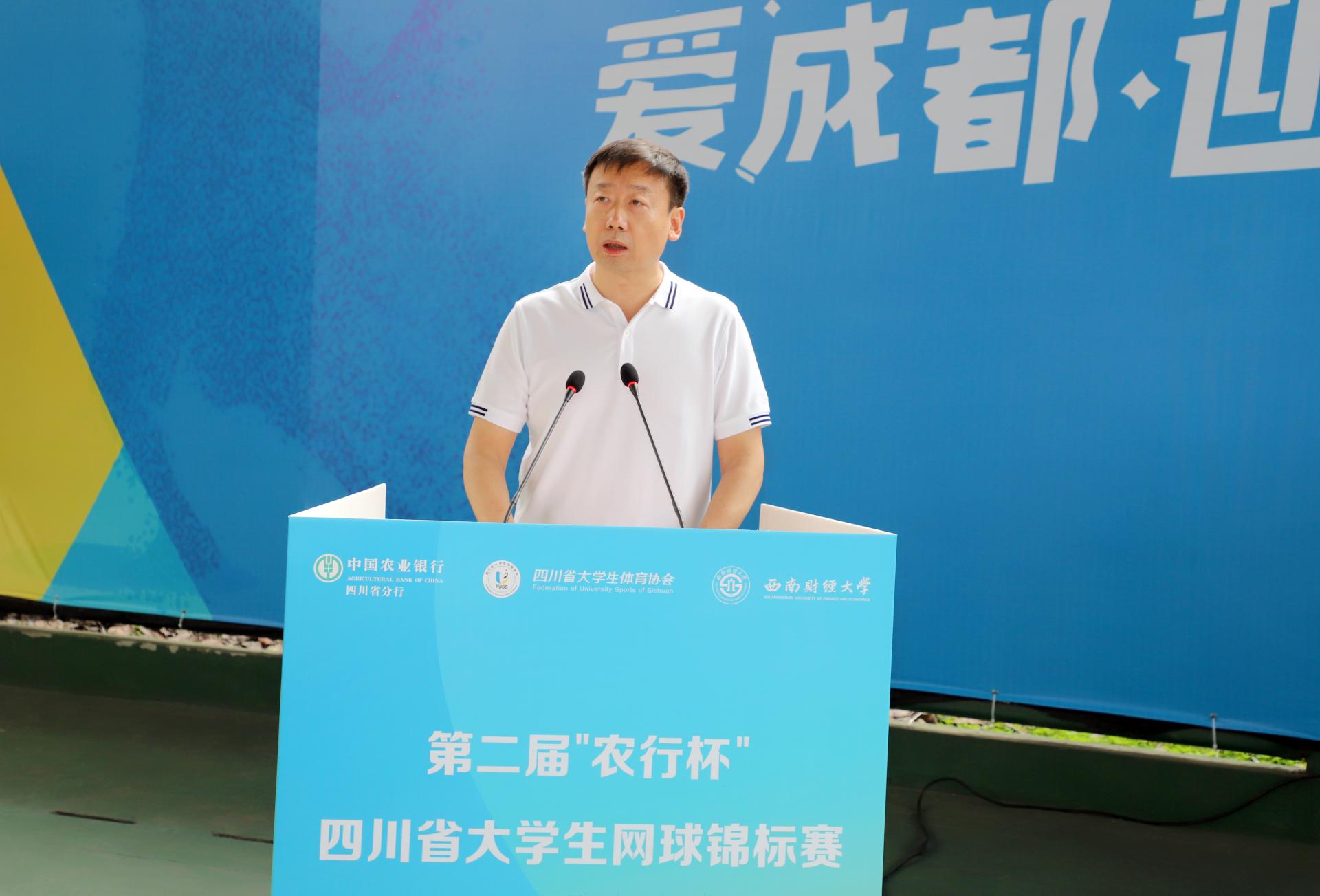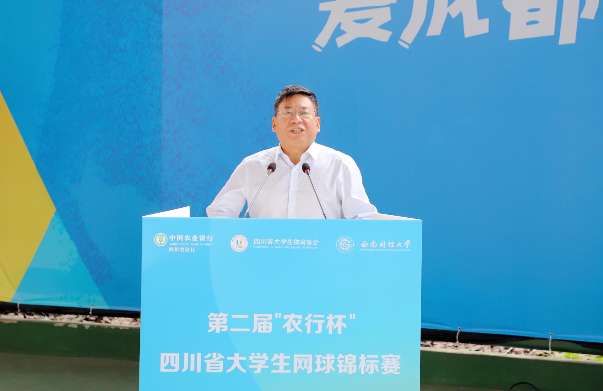 5月13日、14日,由四川省教育厅指导、四川省大学生体育协会主办、西南财经大学承办、中国农业银行四川省分行联办的第二届“农行杯”四川省大学生网球锦标赛在完美体育在线(中国)唯一官方网站柳林校区举行,全省48支代表队和700余名运动员、教练员、裁判员参与了比赛。四川省高等院校网球协会主席赖廷谦教授,中国农业银行四川省分行党委书记、行长孙景伟,中国农业银行四川省分行党委委员、副行长兼成都分行党委书记、行长王屹,中国农业银行四川省分行高级专家兼成都分行党委委员、副行长朱波,四川省大学生网球协会副会长王定宣教授,成都市网球协会副主席贺杰,完美体育在线(中国)唯一官方网站党委书记赵德武教授,党委副书记、副校长李永强教授出席开幕式。学校完美体育在线(中国)唯一官方网站院长、四川省大学生体育协会会长杨远波主持开幕式。
