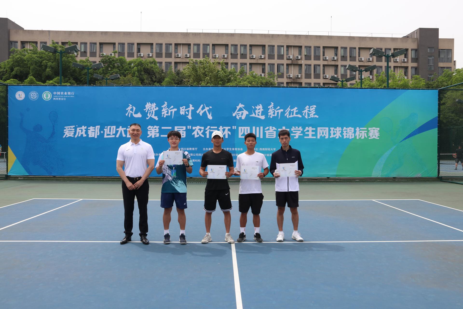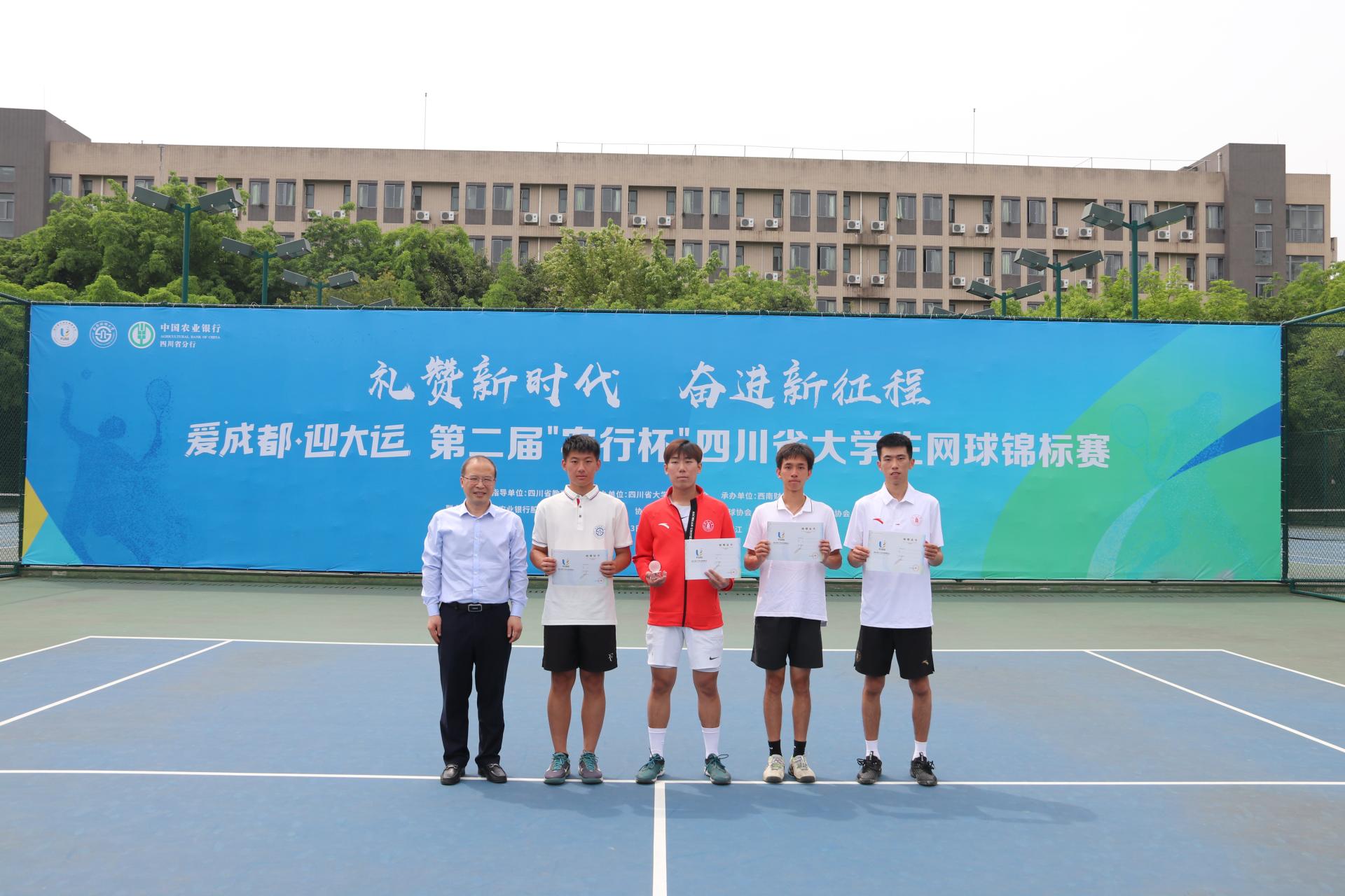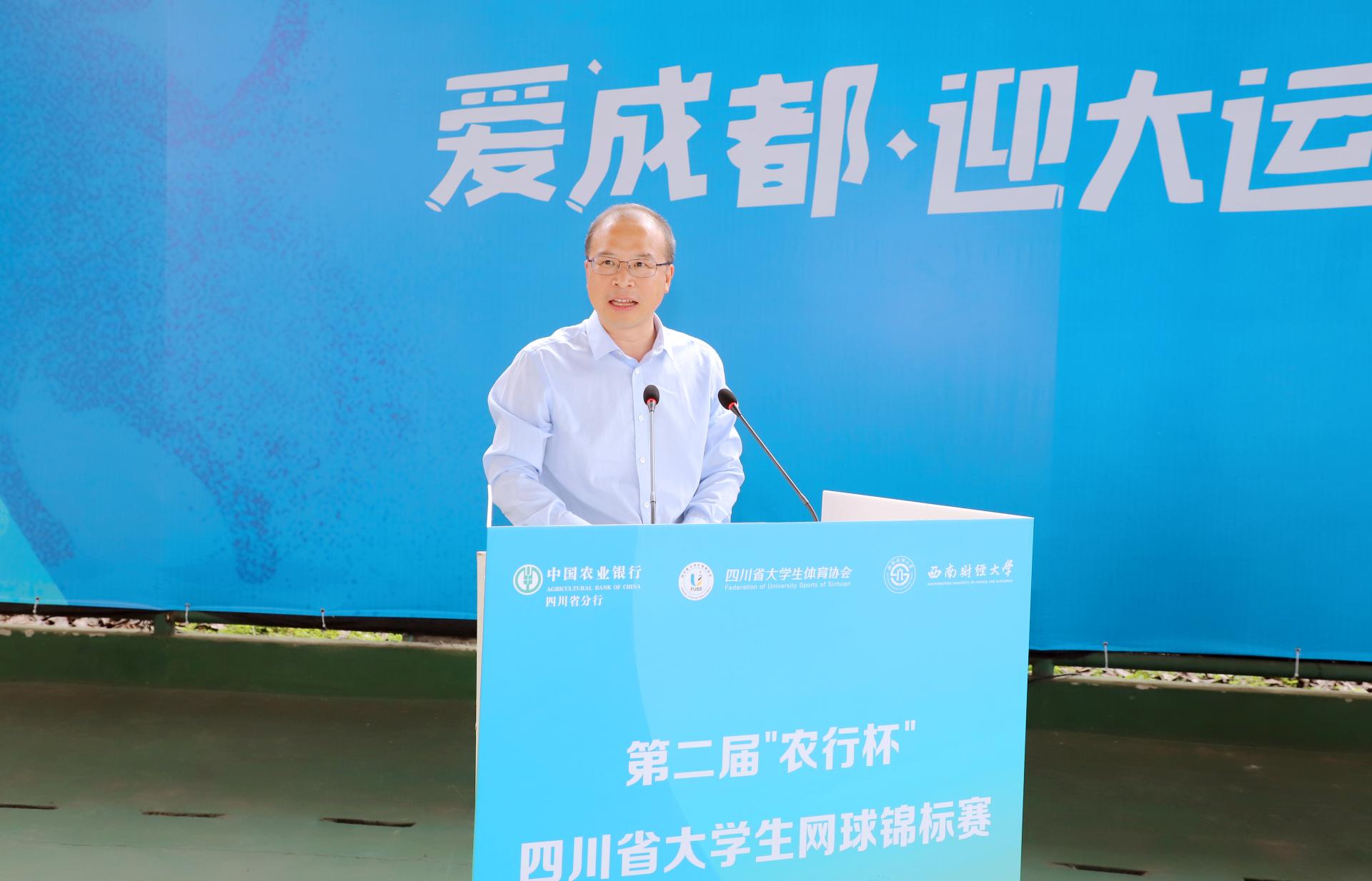 5月13日、14日,由四川省教育厅指导、四川省大学生体育协会主办、西南财经大学承办、中国农业银行四川省分行联办的第二届“农行杯”四川省大学生网球锦标赛在完美体育在线(中国)唯一官方网站柳林校区举行,全省48支代表队和700余名运动员、教练员、裁判员参与了比赛。四川省高等院校网球协会主席赖廷谦教授,中国农业银行四川省分行党委书记、行长孙景伟,中国农业银行四川省分行党委委员、副行长兼成都分行党委书记、行长王屹,中国农业银行四川省分行高级专家兼成都分行党委委员、副行长朱波,四川省大学生网球协会副会长王定宣教授,成都市网球协会副主席贺杰,完美体育在线(中国)唯一官方网站党委书记赵德武教授,党委副书记、副校长李永强教授出席开幕式。学校完美体育在线(中国)唯一官方网站院长、四川省大学生体育协会会长杨远波主持开幕式。