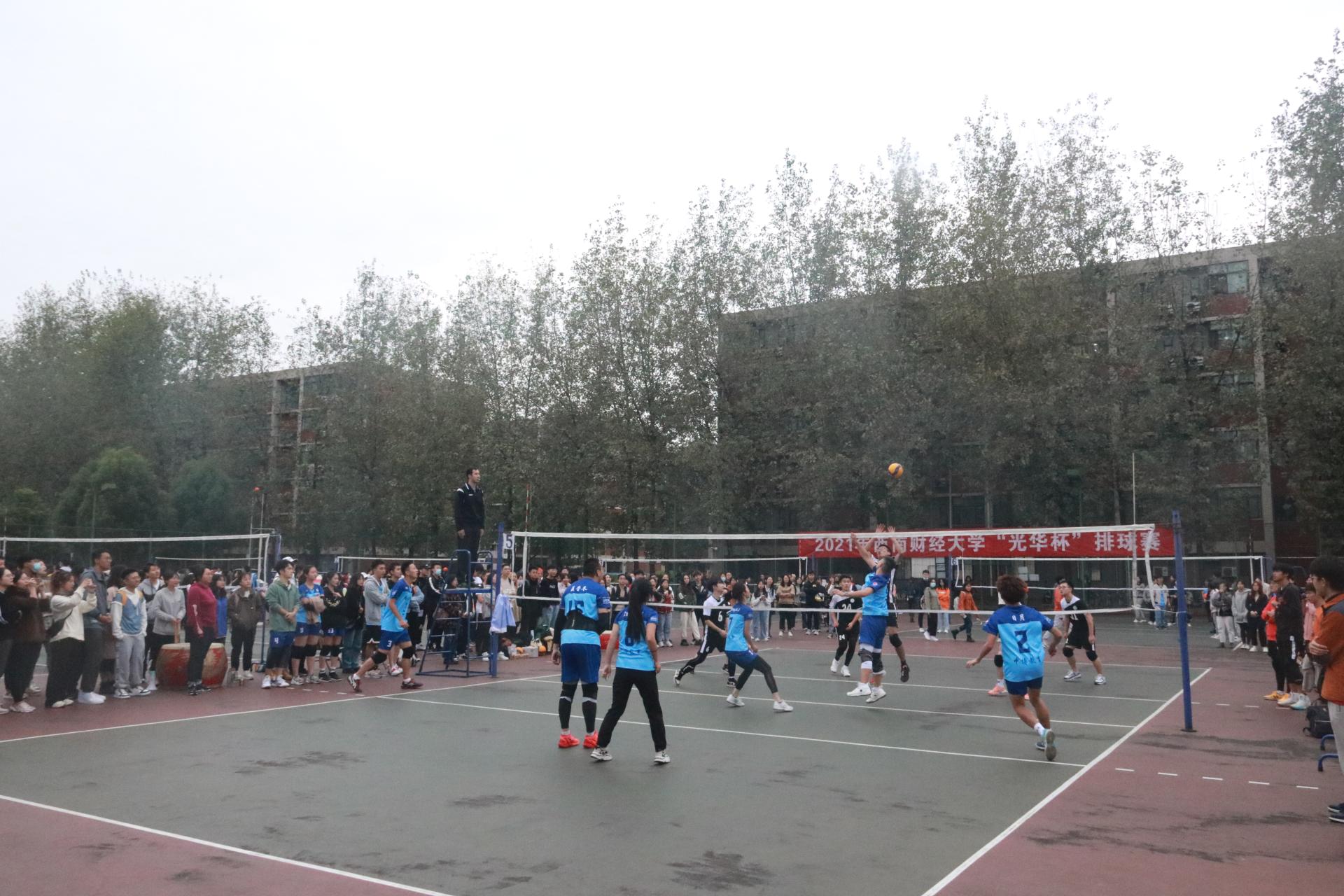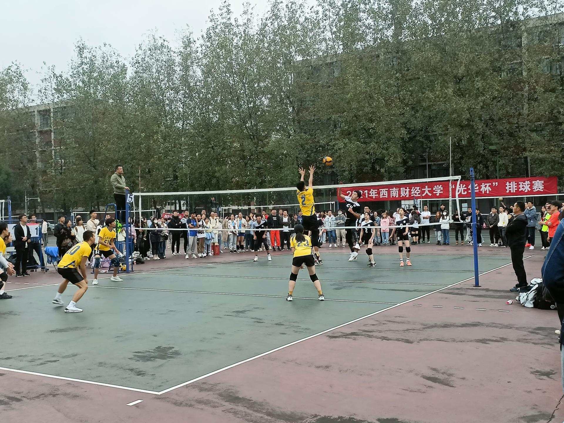 迎大运,促健康,第31届世界大学生夏季运动会排球比赛将在完美体育在线(中国)唯一官方网站举行。为了进一步推动全民健身运动在完美体育在线(中国)唯一官方网站的开展,当好东道主,增强大学生的身心健康,丰富校园文化生活,营造浓厚的排球氛围, 10月11日,2021年西南财经大学“光华杯”排球赛在柳林校区晨曦排球场拉开帷幕。