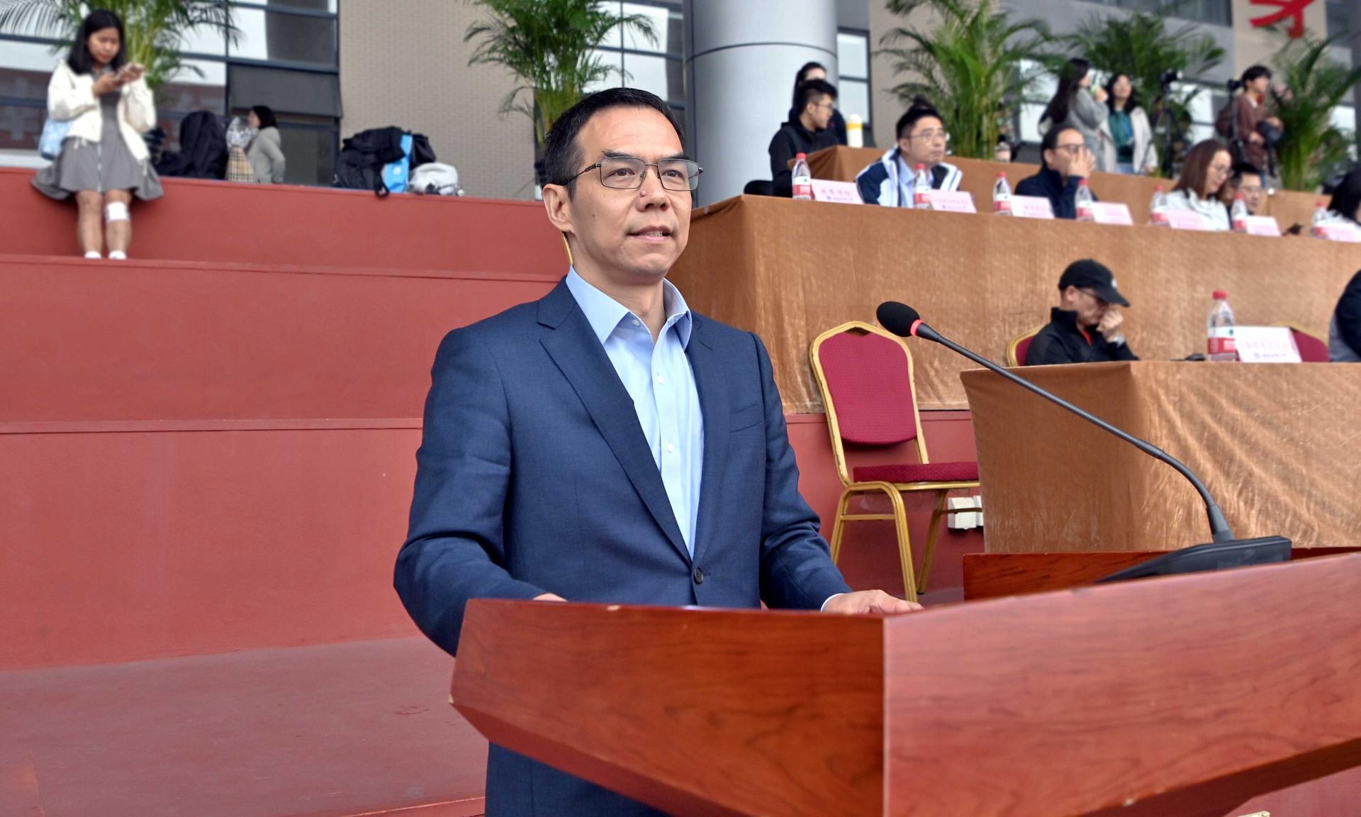27日下午,运动会圆满结束,桂富强致闭幕辞。他希望同学们不断涵养堪当民族复兴重任的志气、骨气和底气,牢固树立健康第一的理念,养成良好的锻炼习惯,常邀同窗伙伴相聚绿茵场,共同奏响“西财梦”与“强国梦”的协奏曲。