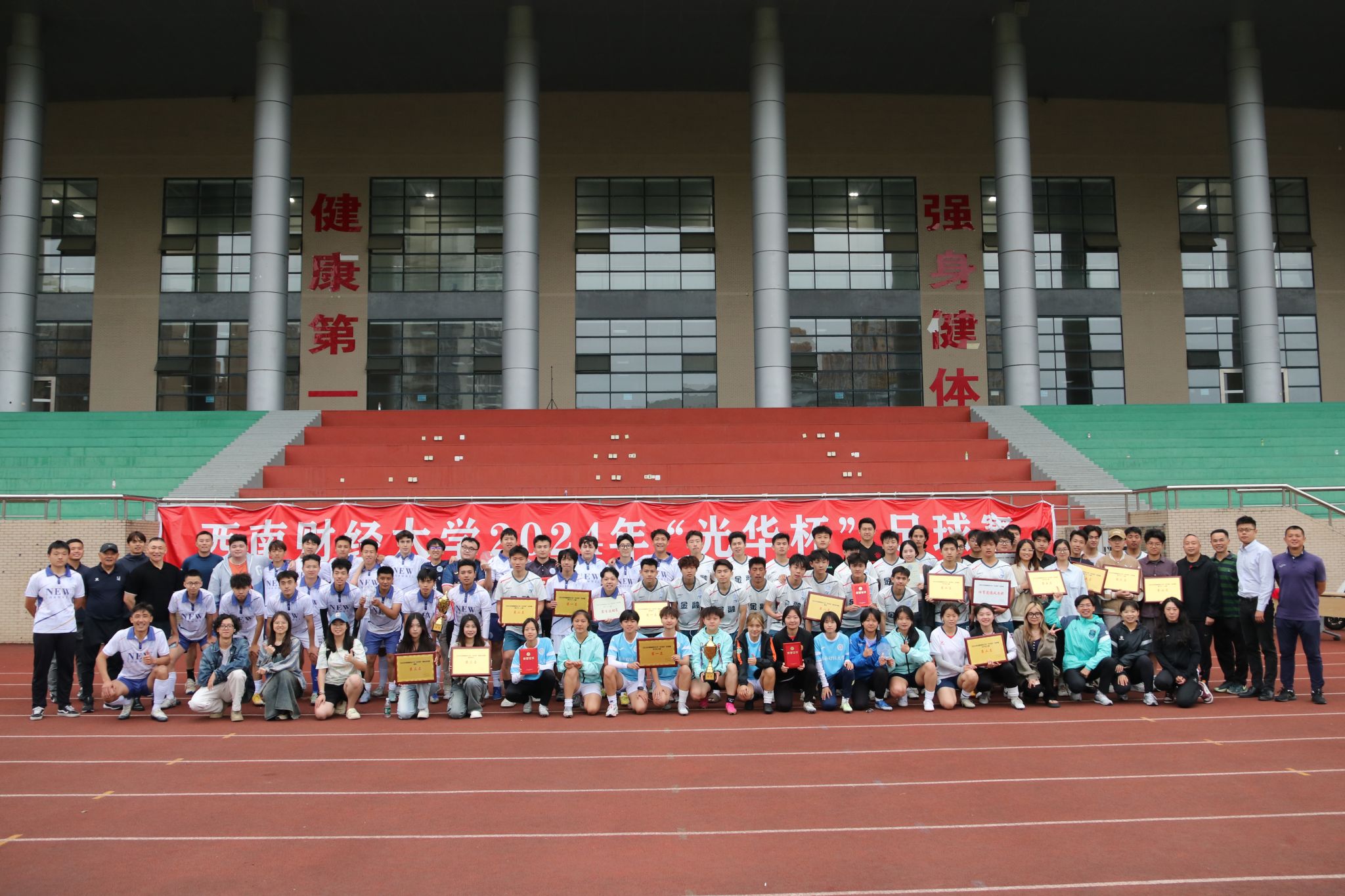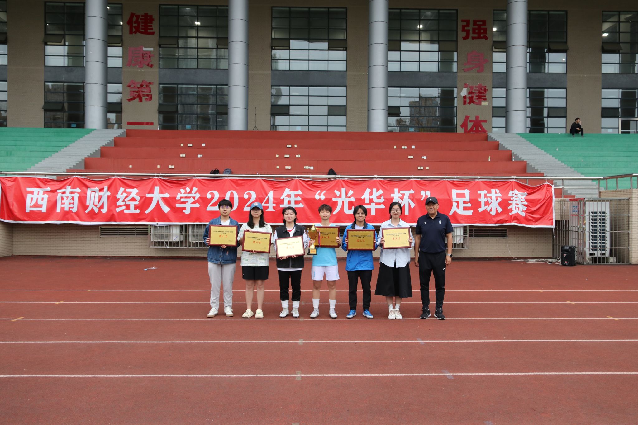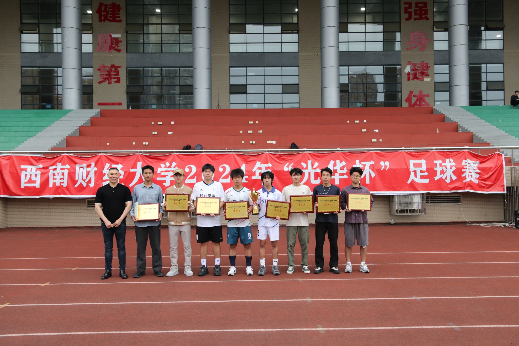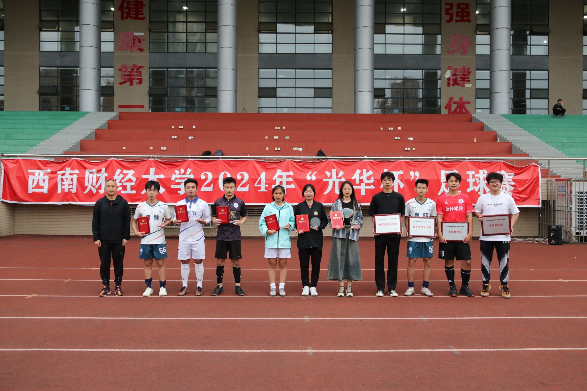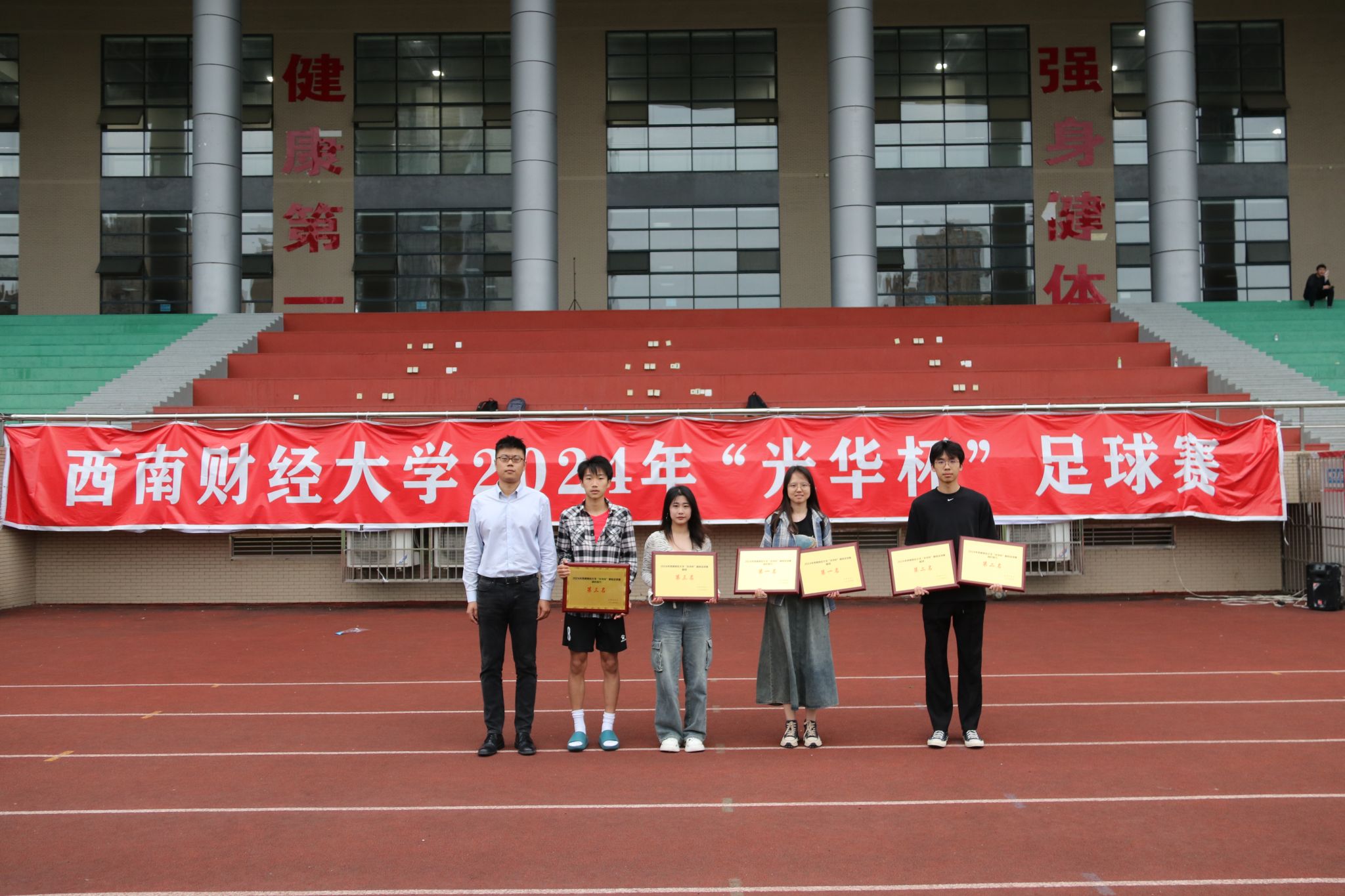 4月23日下午,“礼赞新时代·奋进新征程,迎百年校庆·铸西财辉煌”2024年西南财经大学“光华杯”足球比赛颁奖仪式在晨曦足球场举行。完美体育在线(中国)唯一官方网站院长杨远波,党委书记周正宏,副院长阴涛、陈丛刊,副书记李治为获奖学院以及个人颁发了荣誉证书及奖牌。