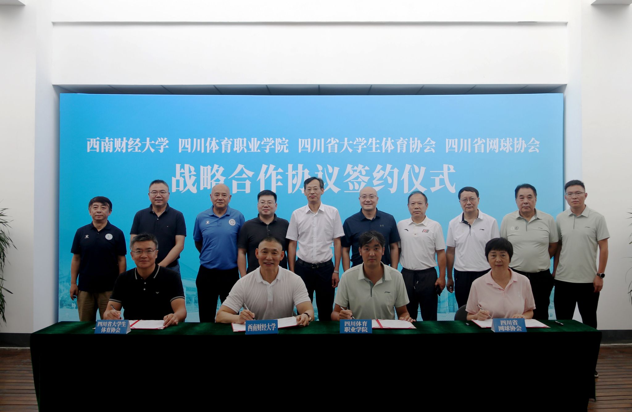 7月19日,学校与四川体育职业学院、四川省网球协会、四川省大学生体育协会四方战略合作协议签约仪式在光华校区体育馆举行。四川体育职业学院党委副书记刘汉权,四川省大学生体育协会秘书长刘江,四川省网球协会会长罗茂乡以及四川省网球运动管理中心、四川省大学生体育协会和四川省网球协会相关负责人;学校党委常委、副校长桂富强,国内合作与发展处、完美体育在线(中国)唯一官方网站相关负责人及教师代表参加仪式。