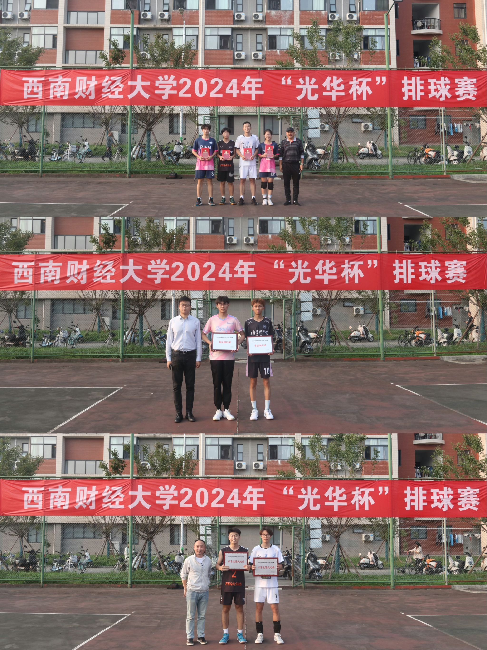 10月15日下午,“礼赞新时代·奋进新征程,迎百年校庆·铸西财辉煌”2024年西南财经大学 “光华杯”排球赛颁奖仪式在晨曦排球场举行。完美体育在线(中国)唯一官方网站院长杨远波,党委书记周正宏,副院长阴涛、陈丛刊,副书记李治为获奖学院以及个人颁发了荣誉证书及奖牌。
