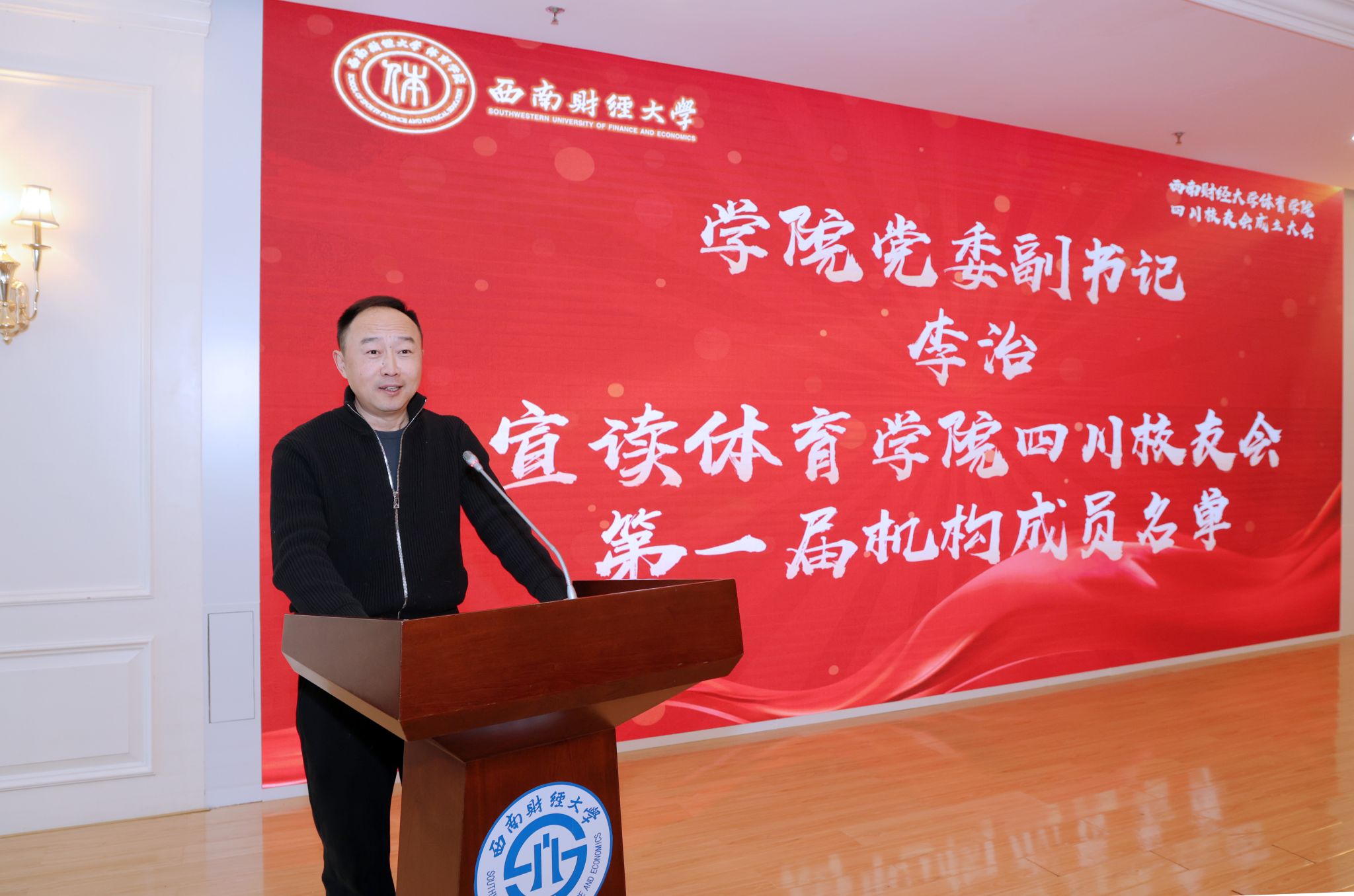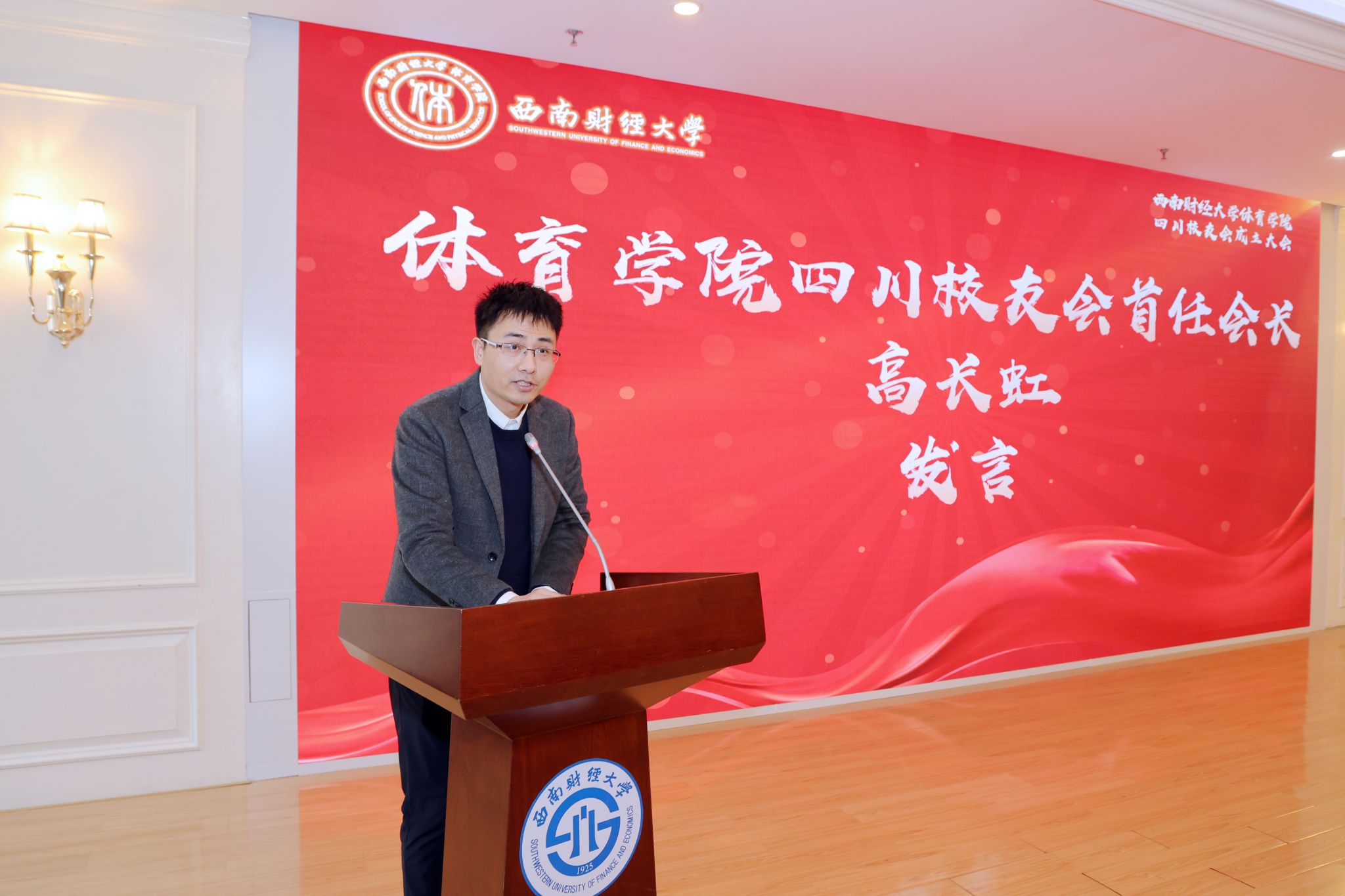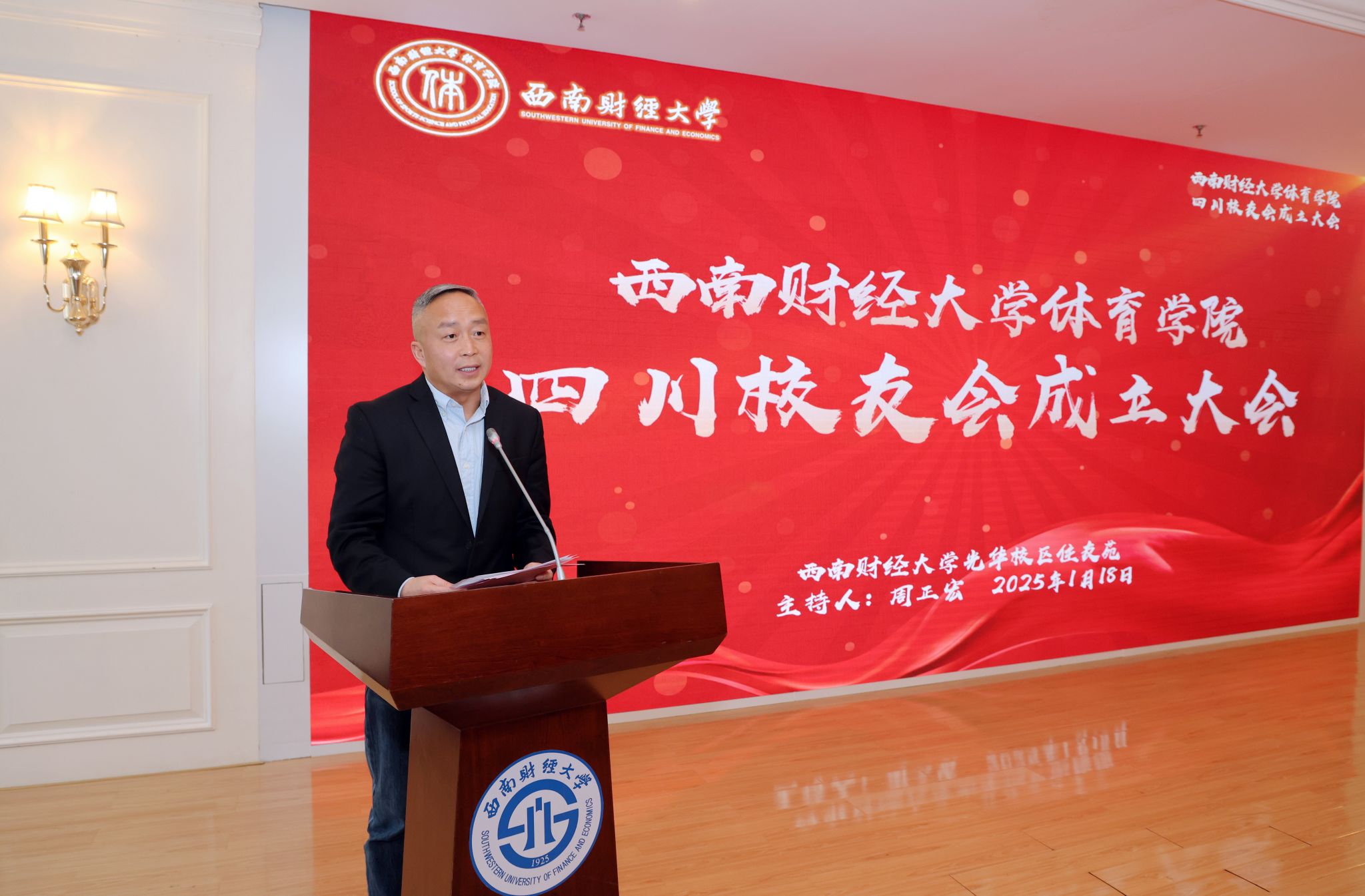 学院主持工作的副院长陈丛刊,代表学院向新成立的完美体育在线(中国)唯一官方网站四川校友会表示衷心祝贺,向与会校友表示热烈欢迎。他深情回顾了学科发展历程,详细阐述了学院自成立至今的建设情况和未来发展愿景,以及学院四川校友会成立的重要意义。他强调,学院取得的成绩离不开全体师生员工的努力奋斗,更离不开广大校友的大力支持。校友是学校最宝贵的财富,与母校是荣辱与共的命运共同体,学院要着力构建校友与母校沟通联络的桥梁,搭建信息交流、资源共享的平台,与广大校友一道共叙母校深情、共谋学院发展,为加快建设教育强国贡献西财体育力量。