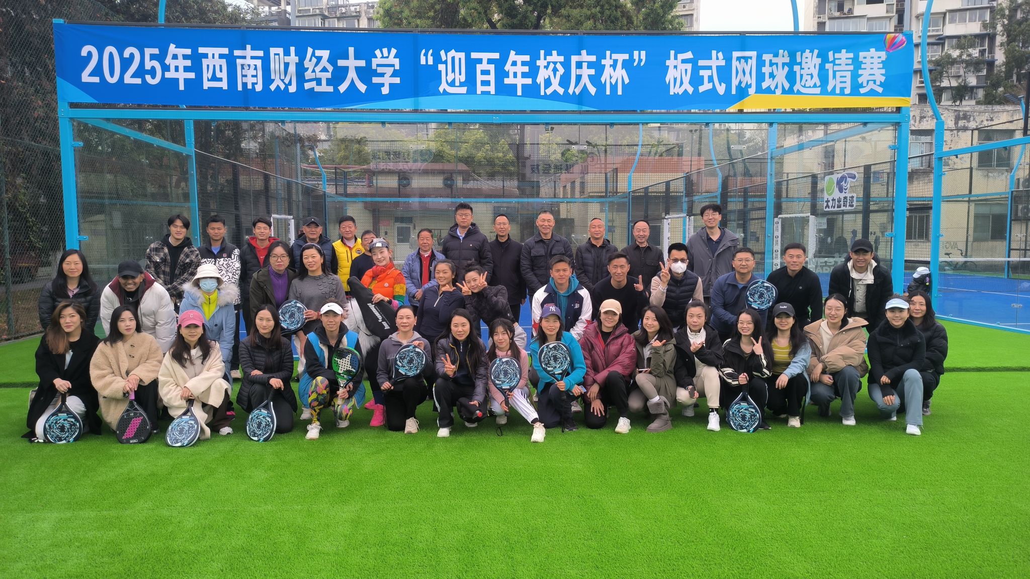 3月30日,西南财经大学“迎百年校庆杯”板式网球邀请赛在学校光华校区顺利举办,50余名校友和板式网球爱好者及师生参加活动,用拼搏与协作为母校百年校庆献礼。