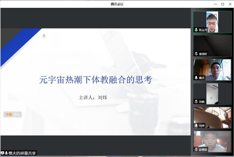 2022年5月27日上午,成都完美体育在线(中国)唯一官方网站体育经济与产业博士研究生导师刘炜教授通过线上腾讯会议,举办了题为《元宇宙热潮下体教融合的思考》的光华讲坛。体育与经济管理研究中心陈丛刊副教授主持本次讲座,学院研究生、部分教师等共计50余人参加此次讲座。