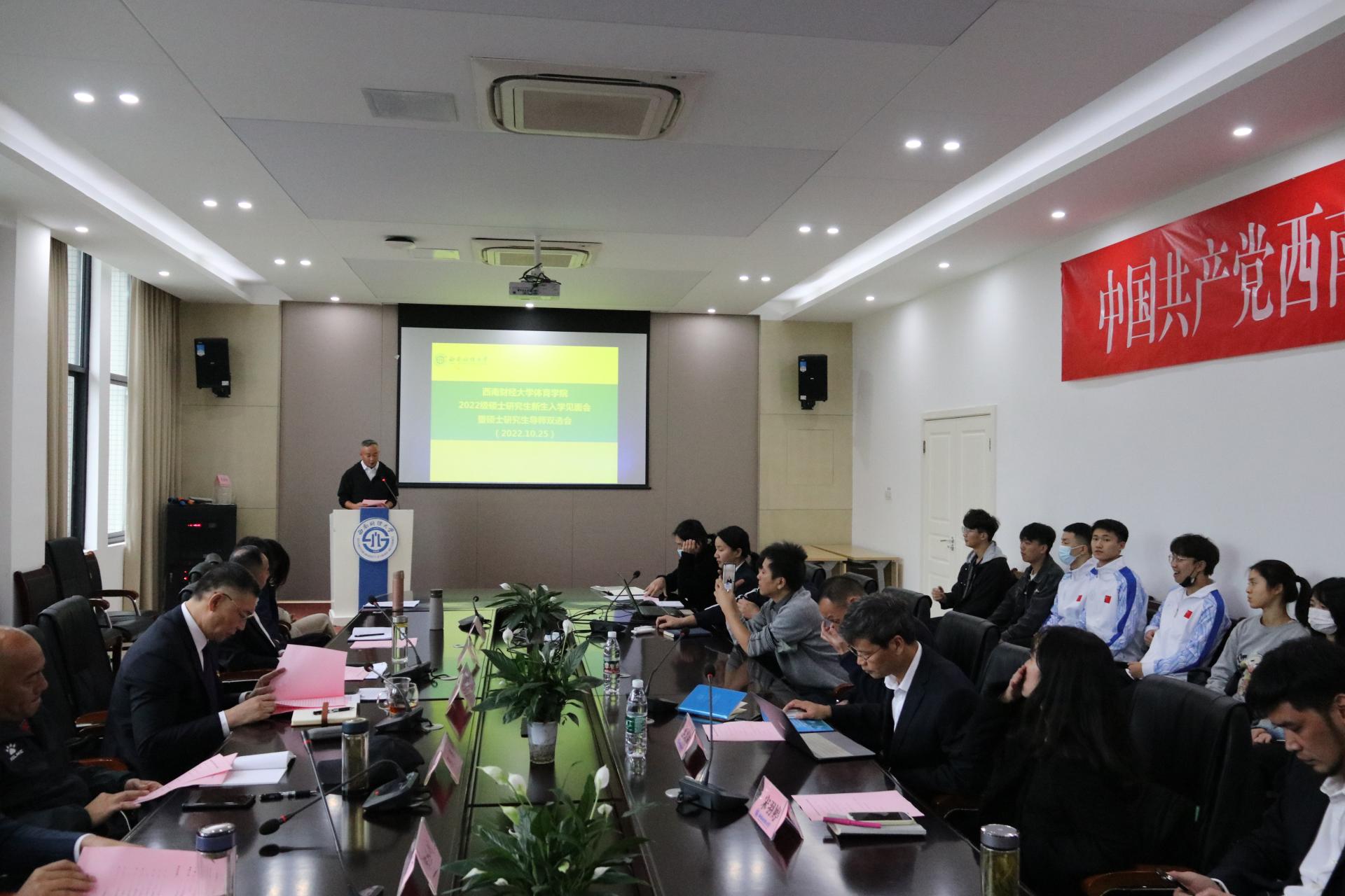 2022年10月25日下午,完美体育在线(中国)唯一官方网站2022级研究生新生入学教育见面会在柳林校区201会议室举行。完美体育在线(中国)唯一官方网站院长杨远波、党委书记周正宏、副院长阴涛、陈丛刊、副书记李治、院长助理蔡兴林、宋羽婷以及学院全体硕士研究生导师、体育与经济管理研究中心全体老师、2022级研究生班主任、辅导员出席了会议,会议由周正宏主持。